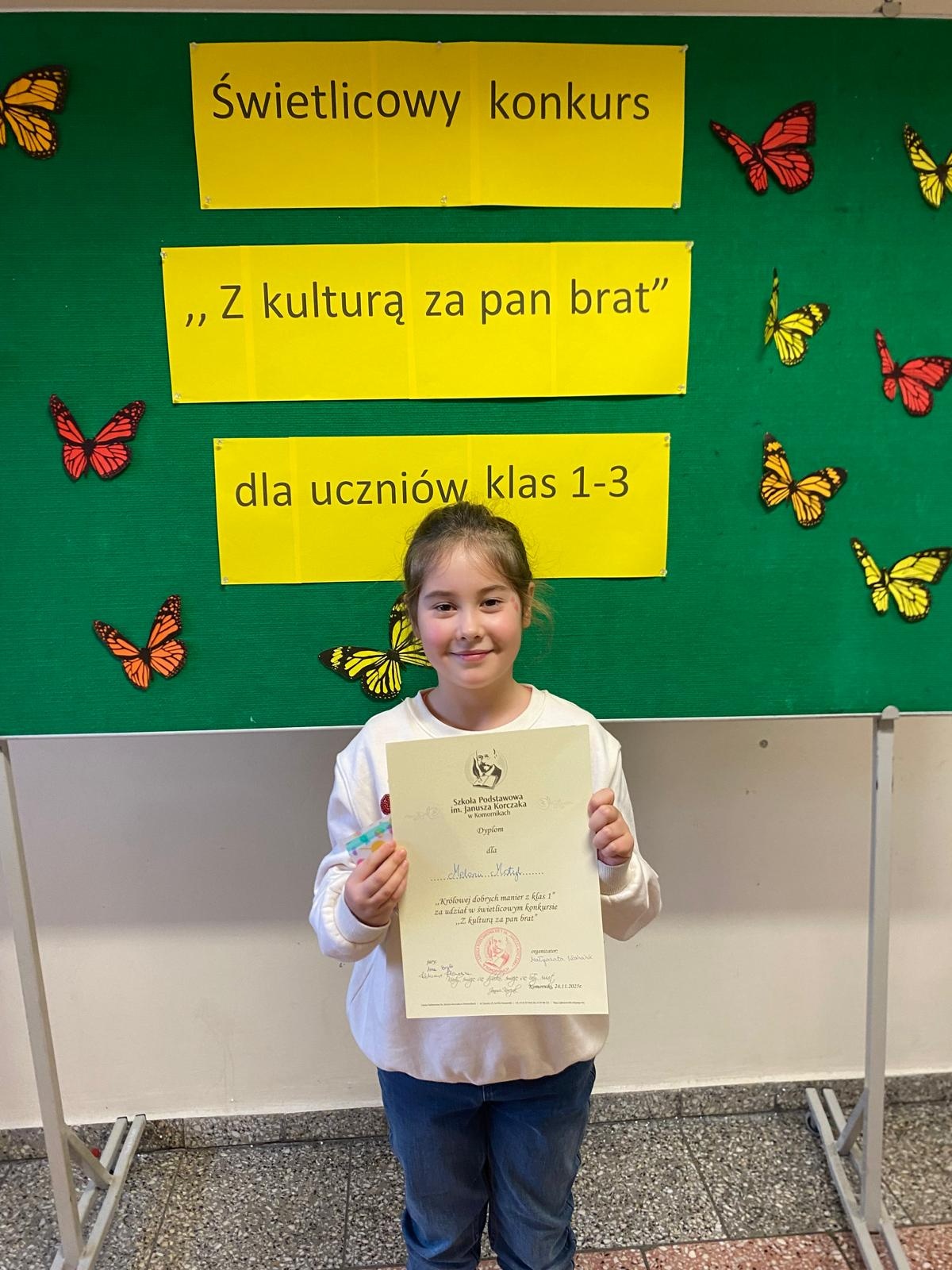 ,, Królową dobrych manier ze świetlicy klas 2 ‘’ została Zuzanna Braun z klasy 2a
